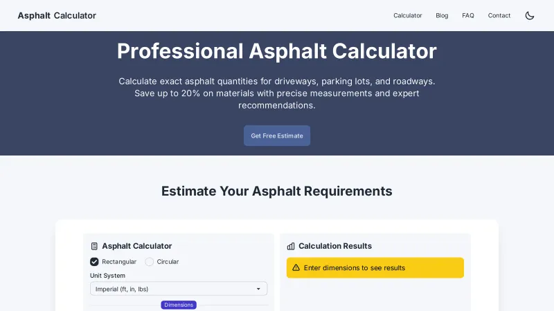 Asphalt Calculator | Professional Paving Estimator Tool -
