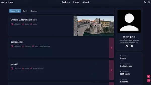 Astral Halo is a static blog template developed with Astro. Partially supports Obsidian features.