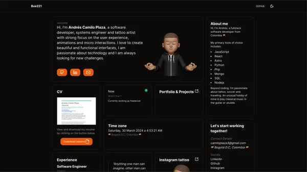 Espero que mi portfolio les sirva a todos, esta hecho con mucho amor. Si les gusta dejen una estrella en Github! ♥ I hope my portfolio is helpful to everyone, it was made with a lot of love. If you like it, please leave a star on GitHub! ♥