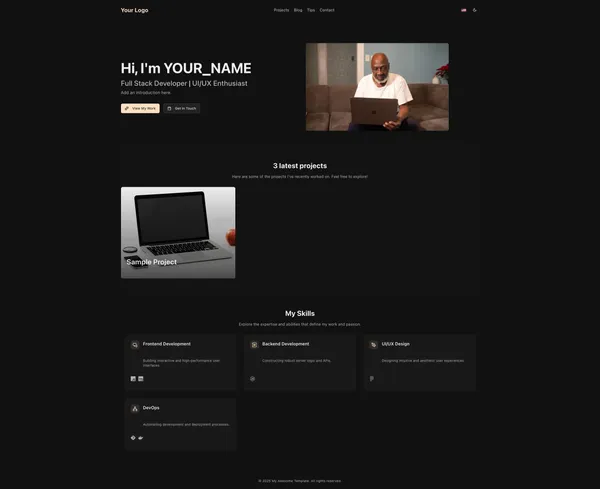 A modern and clean Astro theme for personal portfolios and bilingual (French/English) blogs. Built with TypeScript, Tailwind CSS, and MDX, focusing on performance and best practices. Ideal for developers and content creators