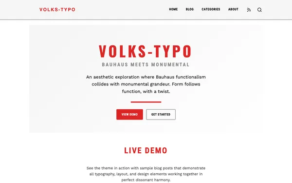 A bold, minimalist Astro blog theme combining Bauhaus modernism with striking typography. Features responsive design, RSS feeds, search functionality, and professional avatar system with zero JavaScript for maximum performance.